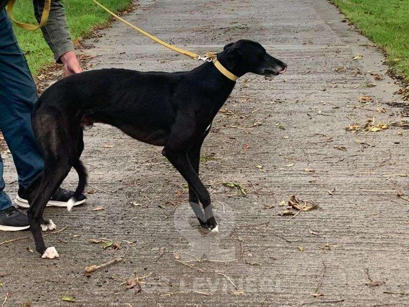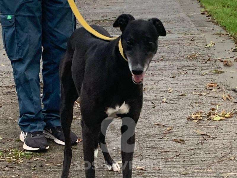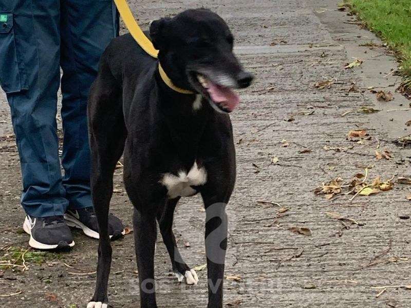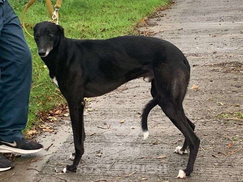 E’ un Greyhound ex “Racer” che ha fatto 41 corse, ha vinto, e ha una vita passata in un box con altri Greyhound e nella sua memoria c’è solo la storia del suo trascorso da “cane da corsa”.