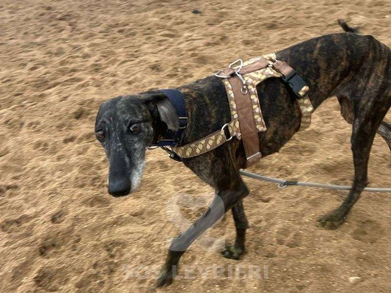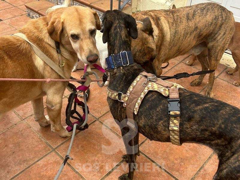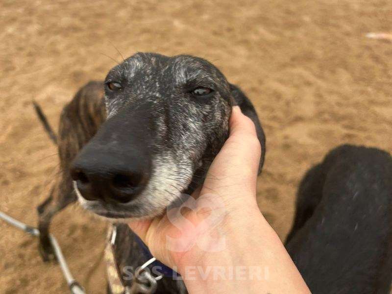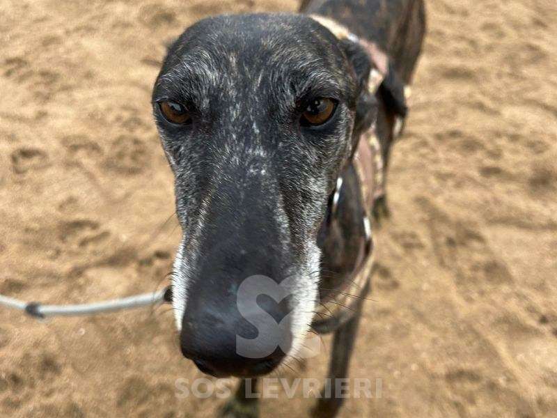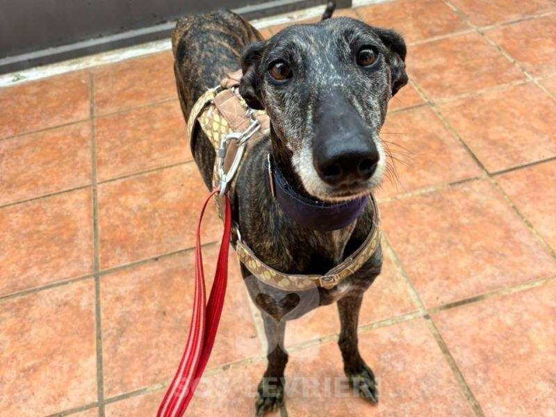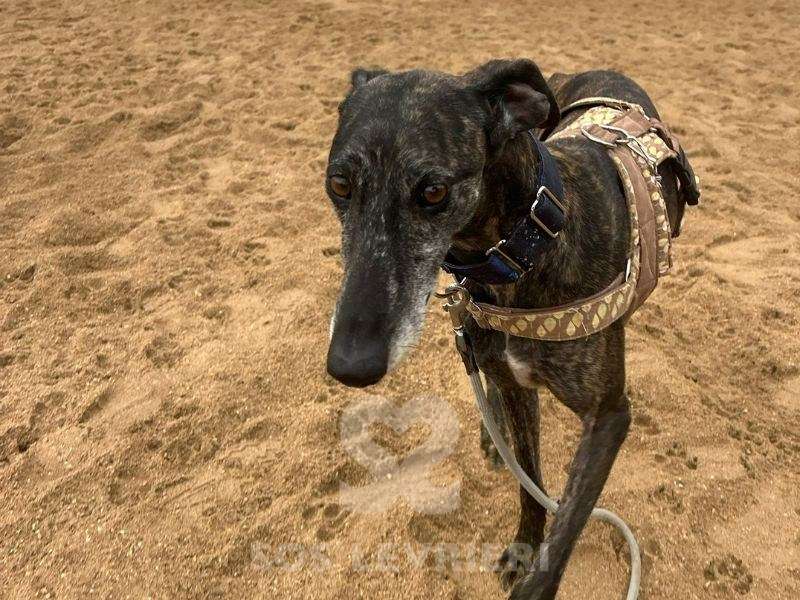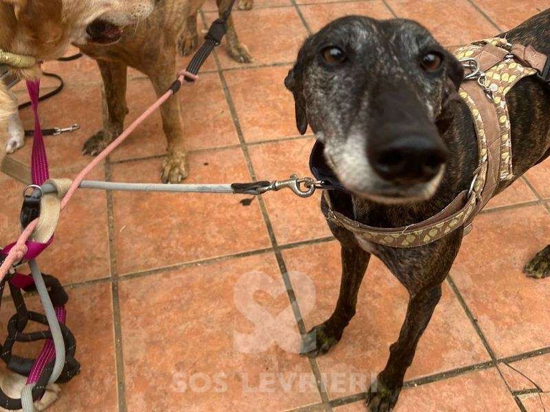 Chispa significa “scintille” perché il suo manto tigrato, quando riflette la luce, crea dei punti di luce dorati meravigliosi. E’ una femmina di Galgo Spagnolo di circa 6 anni dal carattere eccezionale.