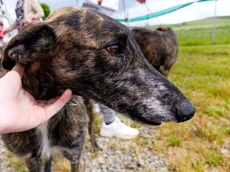Faustino è un Levriero molto nobile, dal carattere timido, che ha bisogno di tempo per adattarsi alle persone e al luogo.