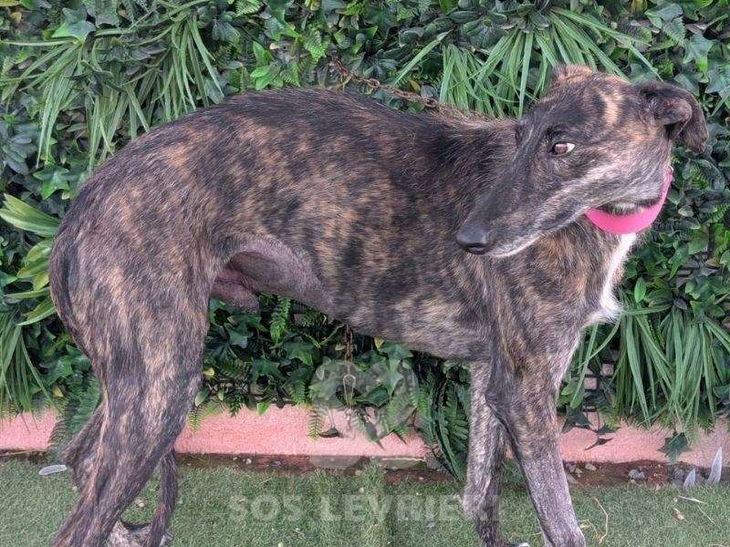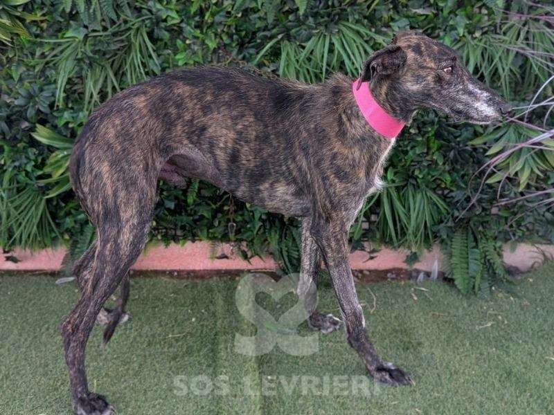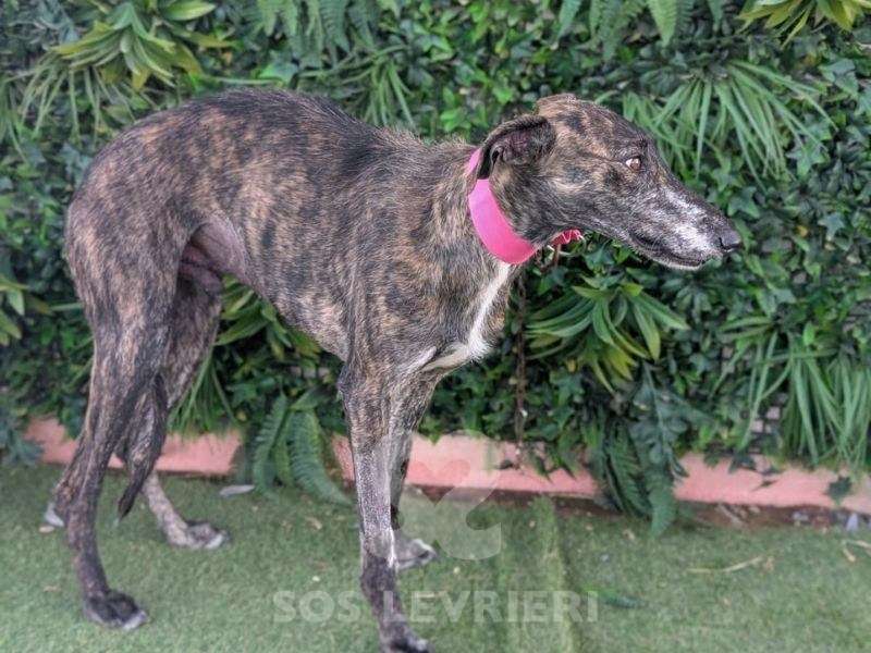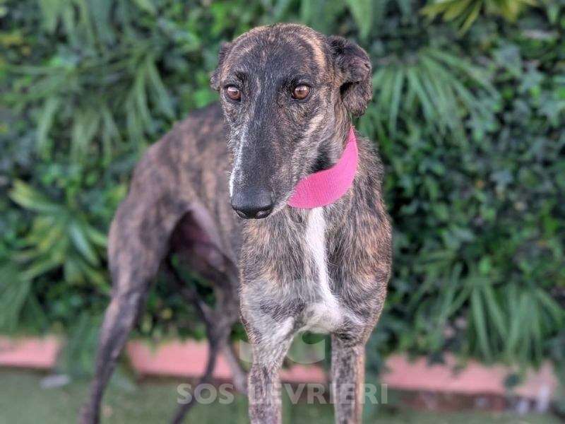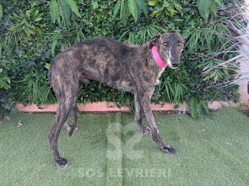 Faustino è un Galgo tenerissimo che parla con gli occhi, tristi, languidi, persi in un passato che vuole solo dimenticare ma che è difficile da lasciar andare. Ha un bel manto tigrato scuro, il corpo snello e perfetto, lo sguardo dolce e sottomesso.