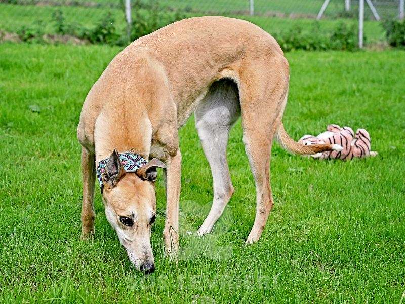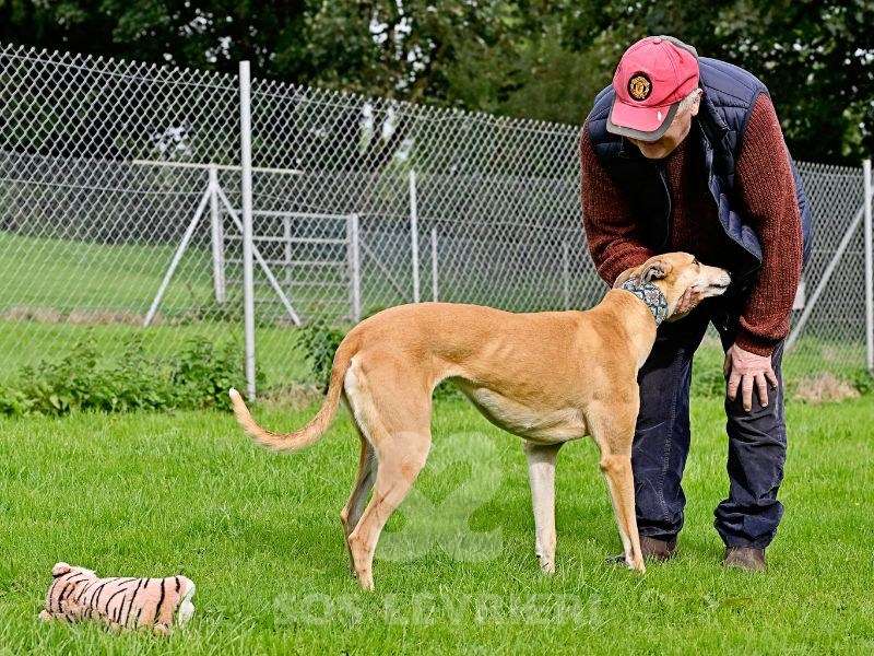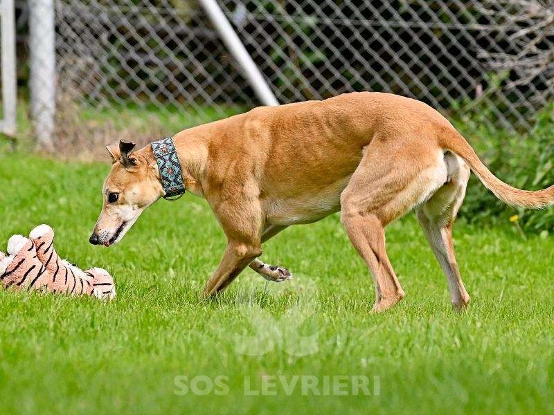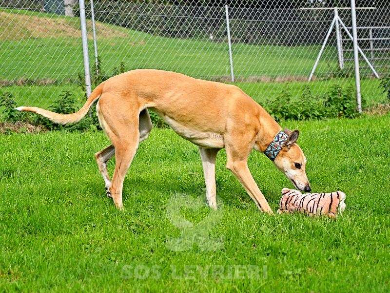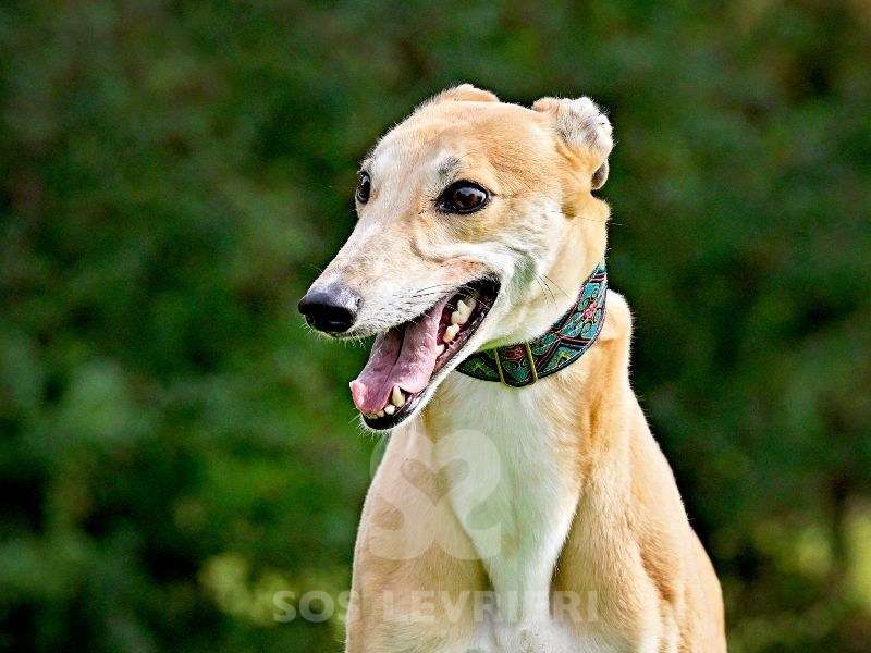 E’ una Greyhound dal carattere docile, equilibrato, nata per essere la tua compagna di vita e quella persona che la adotterà sarà molto fortunata perché vivrà circondata dalla sua gioia e dalla sua dolcezza.