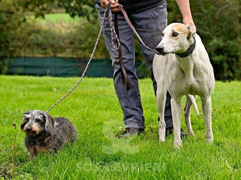Molto pulita nel box, eccellente al guinzaglio, si appoggia fiduciosa alla gamba del suo conduttore.