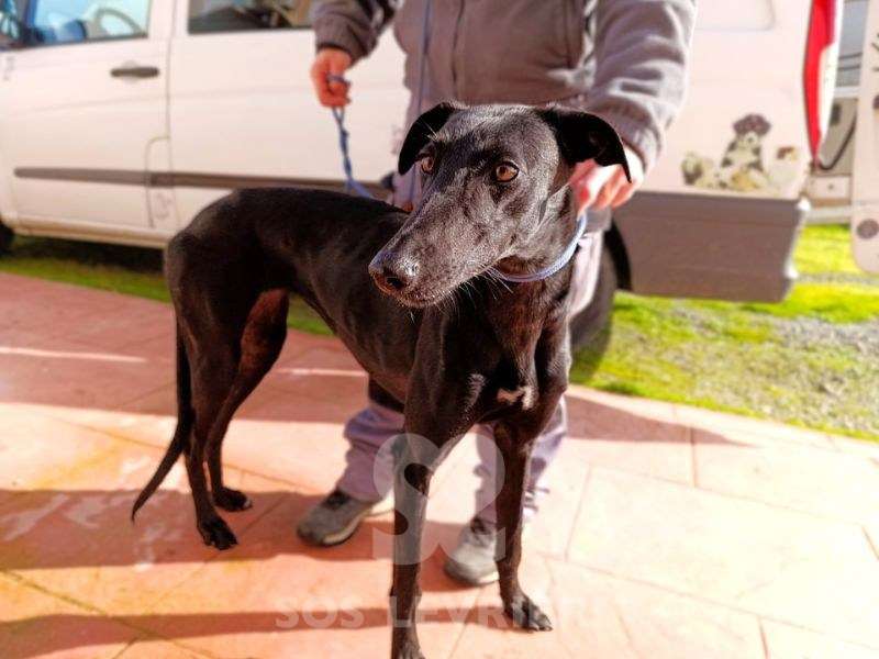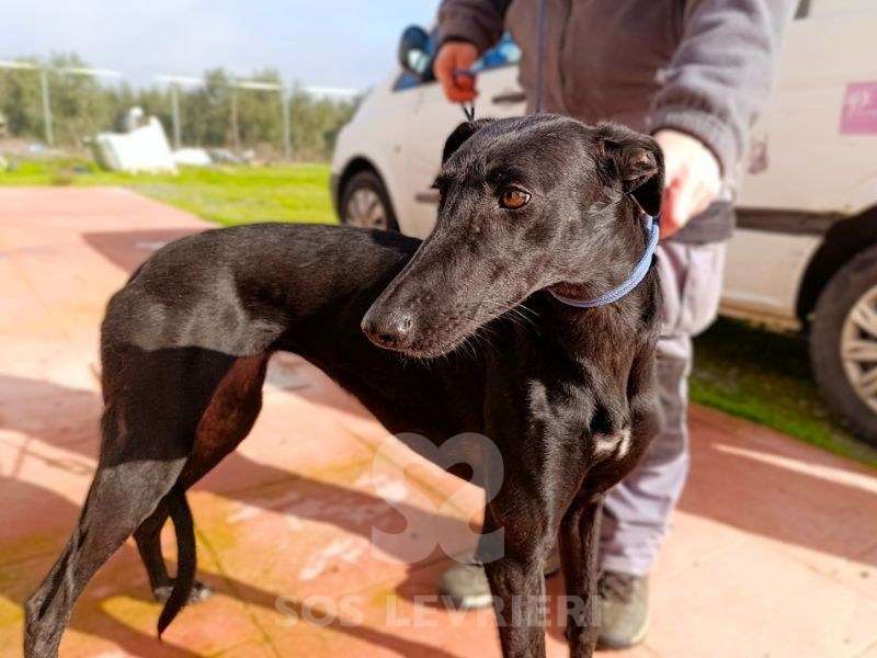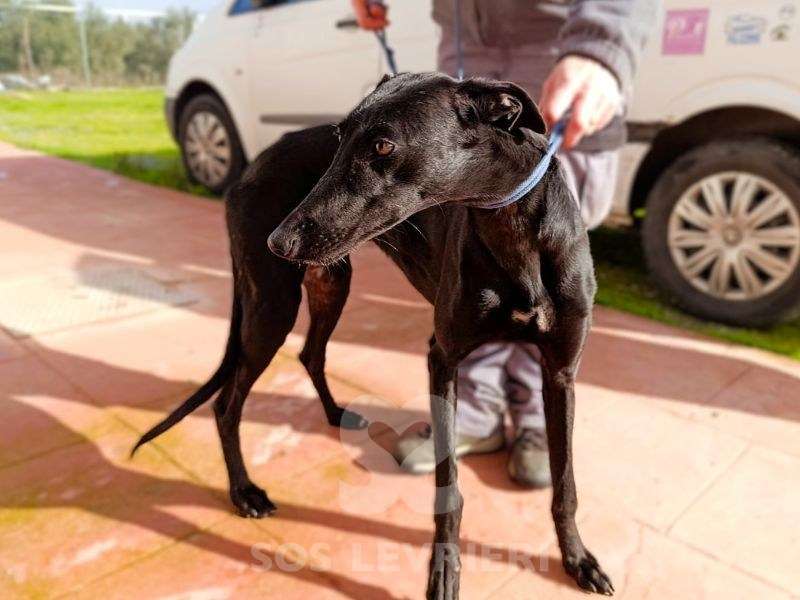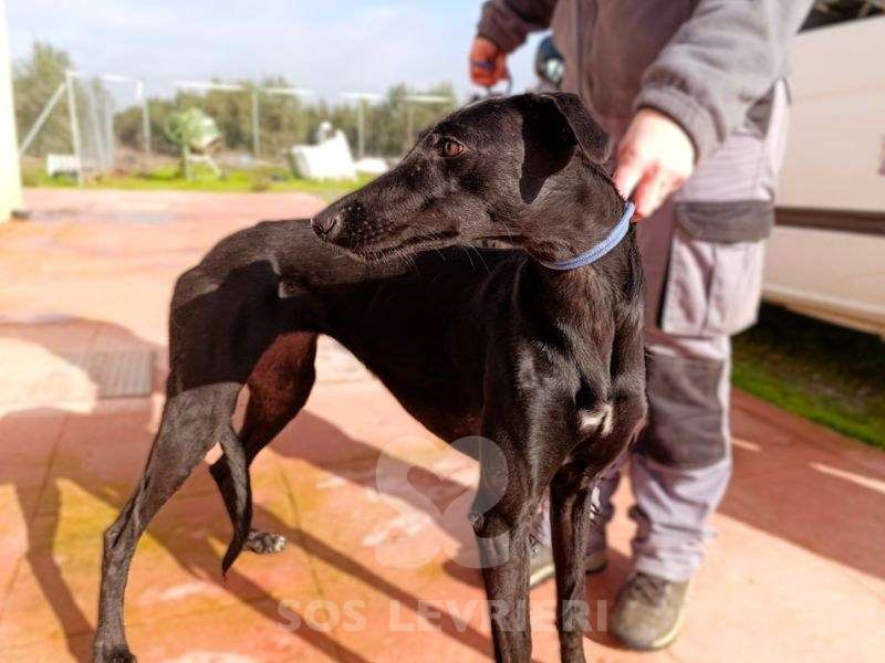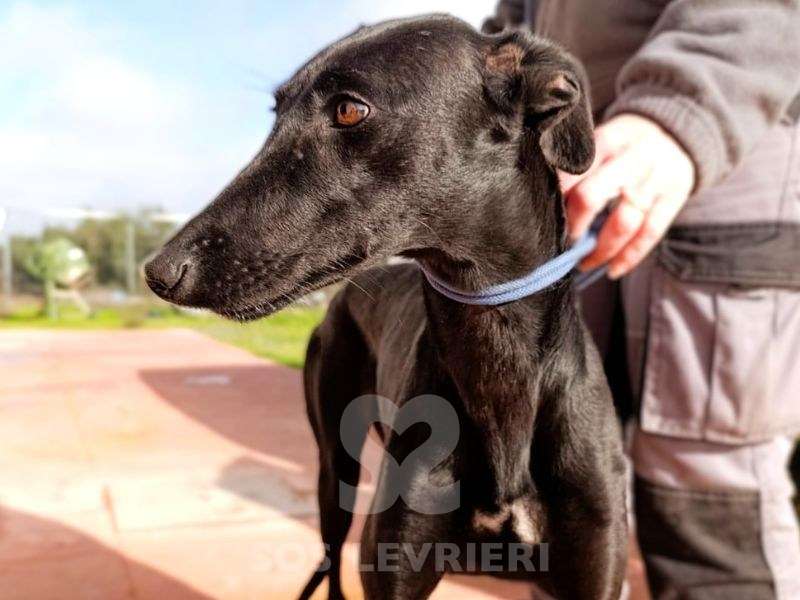 Nome: Maelle Razza: Galgo Sesso: Femmina Data di nascita: 2 Settembre 2022 Colore: Nero Altezza al garrese cm: – Peso kg: 22