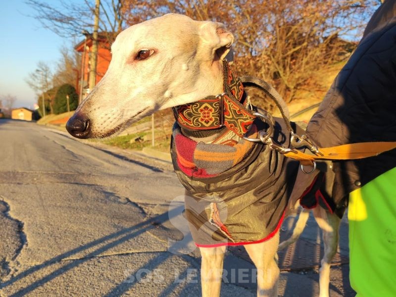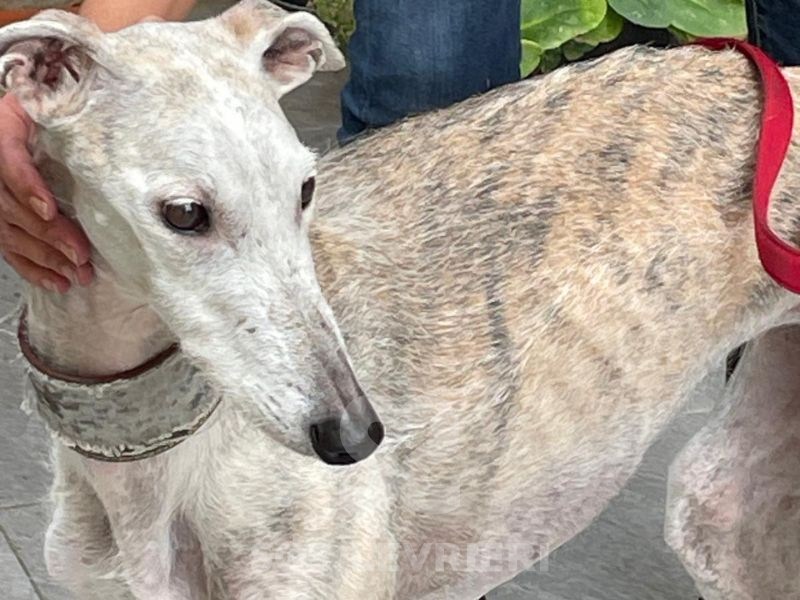 Maika 2 è una femmina di Galgo Spagnolo di 8 anni, ha il pelo tigrato chiaro leggermente ruvido che sembra quasi bianco, gli occhi a mandorla,e lo sguardo perso di chi non capisce.