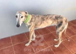 E’ un Levriero giovane, molto giocoso e solare che ben si è inserito fin dal primo momento con tutti gli altri cani del rifugio.