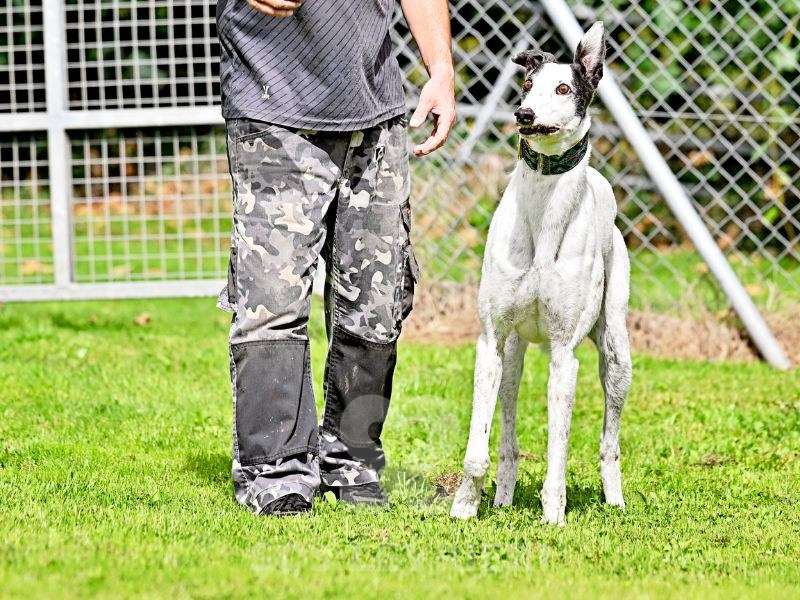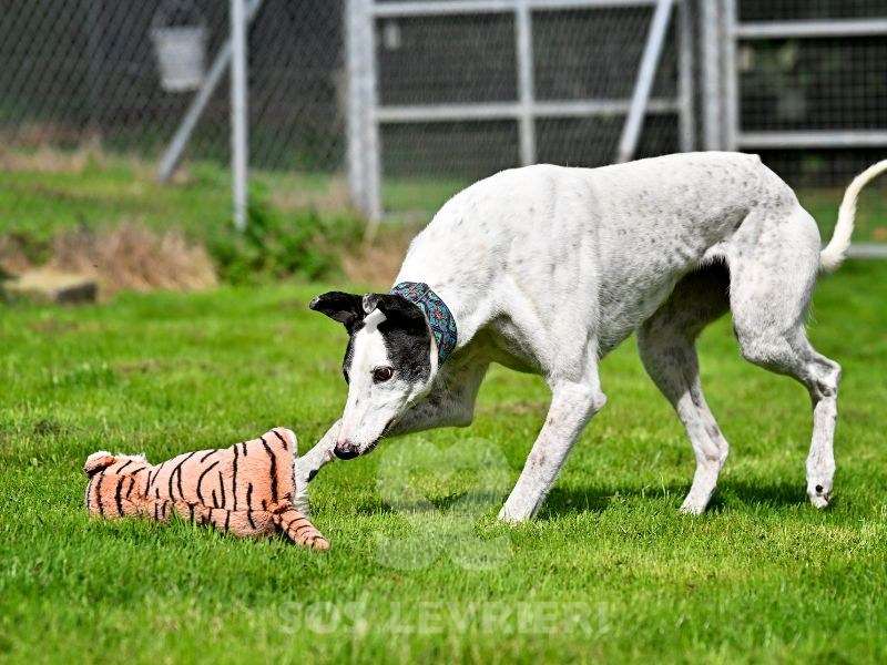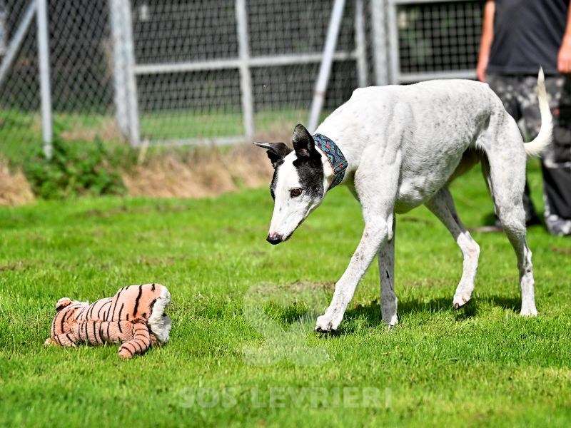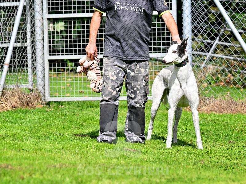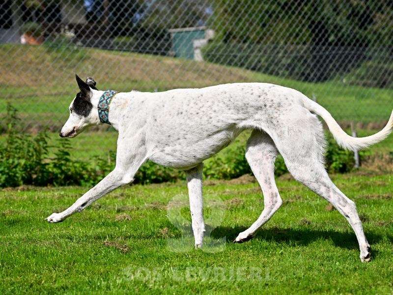 Come la maggior parte dei coursing ha un carattere pacato, rilassato, adora il riposo e la quiete, ma non pensatela come una “vecchierella” perché se vuole da la polvere anche ai giovani e li mette in riga.
