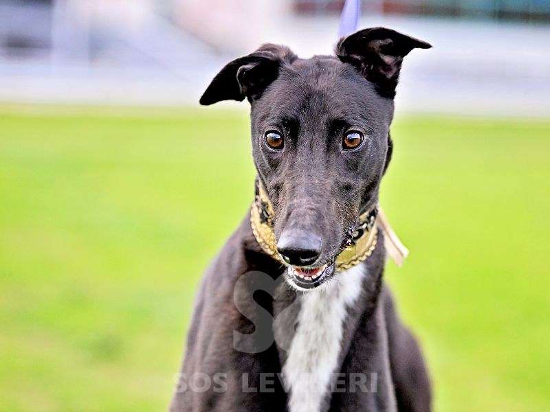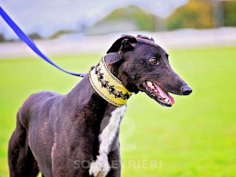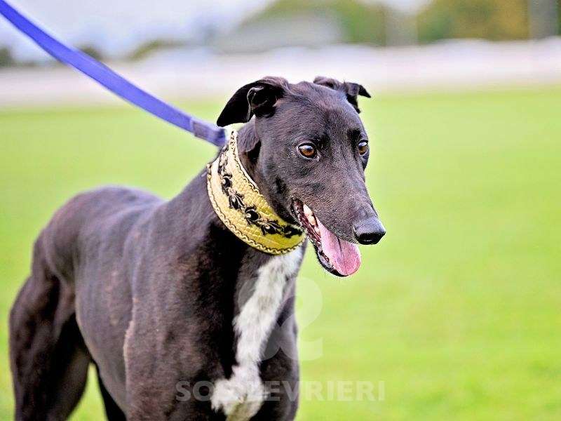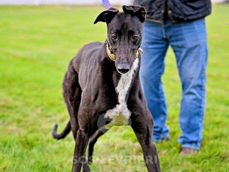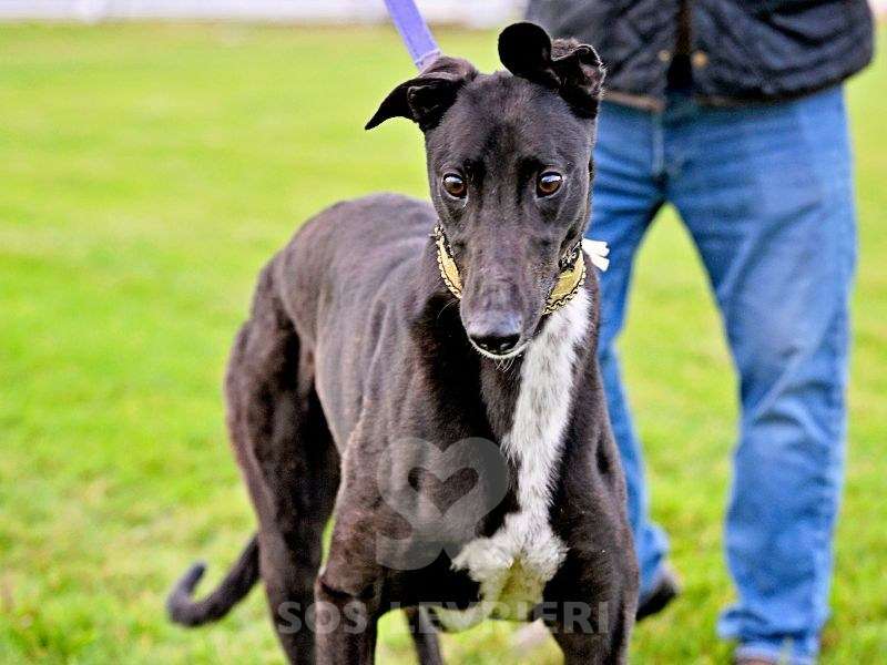 E’ un Greyhound dal carattere sereno e senza paure, ha solo tanto bisogno di essere visto e amato, cerca molto una figura di riferimento a cui affidarsi senza il timore di prendere una sgridata.