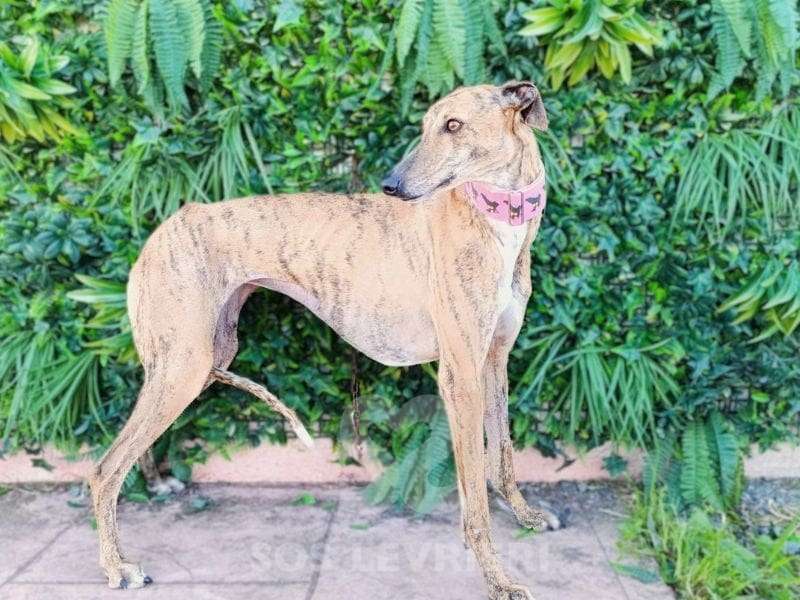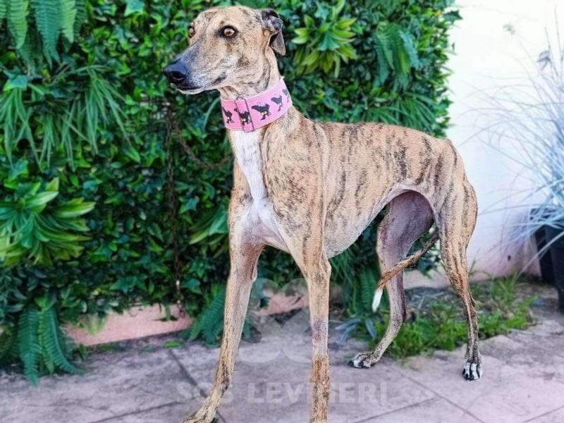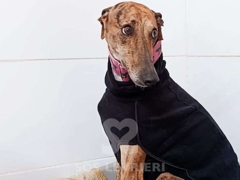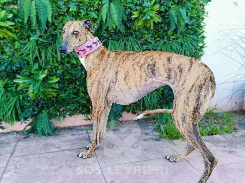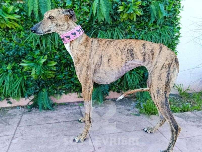 Nome: Ziora Razza: Galgo Sesso: Femmina Data di nascita: 1 Dicembre 2022 Colore: Tigrata Altezza al garrese cm: – Peso kg: 18